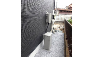 3~4人家族の電力需要に合わせ、4~5kWの太陽光パネルと9.7kWの蓄電池を選定。「将来性」と「美観」にこだわり、EV購入を見据えて拡張性の高いニチコン製の「トライブリッド蓄電システム®」を採用しました。住宅用太陽光発電と家庭用蓄電池、V2Hの3機器を1台のパワーコンディショナで一元管理できる製品です。また、ハウスメーカー様や電気工事業者様と綿密に連携し、建築段階から配線ルートを確保。新築の美しい外観を損なわない施工を実現しました。