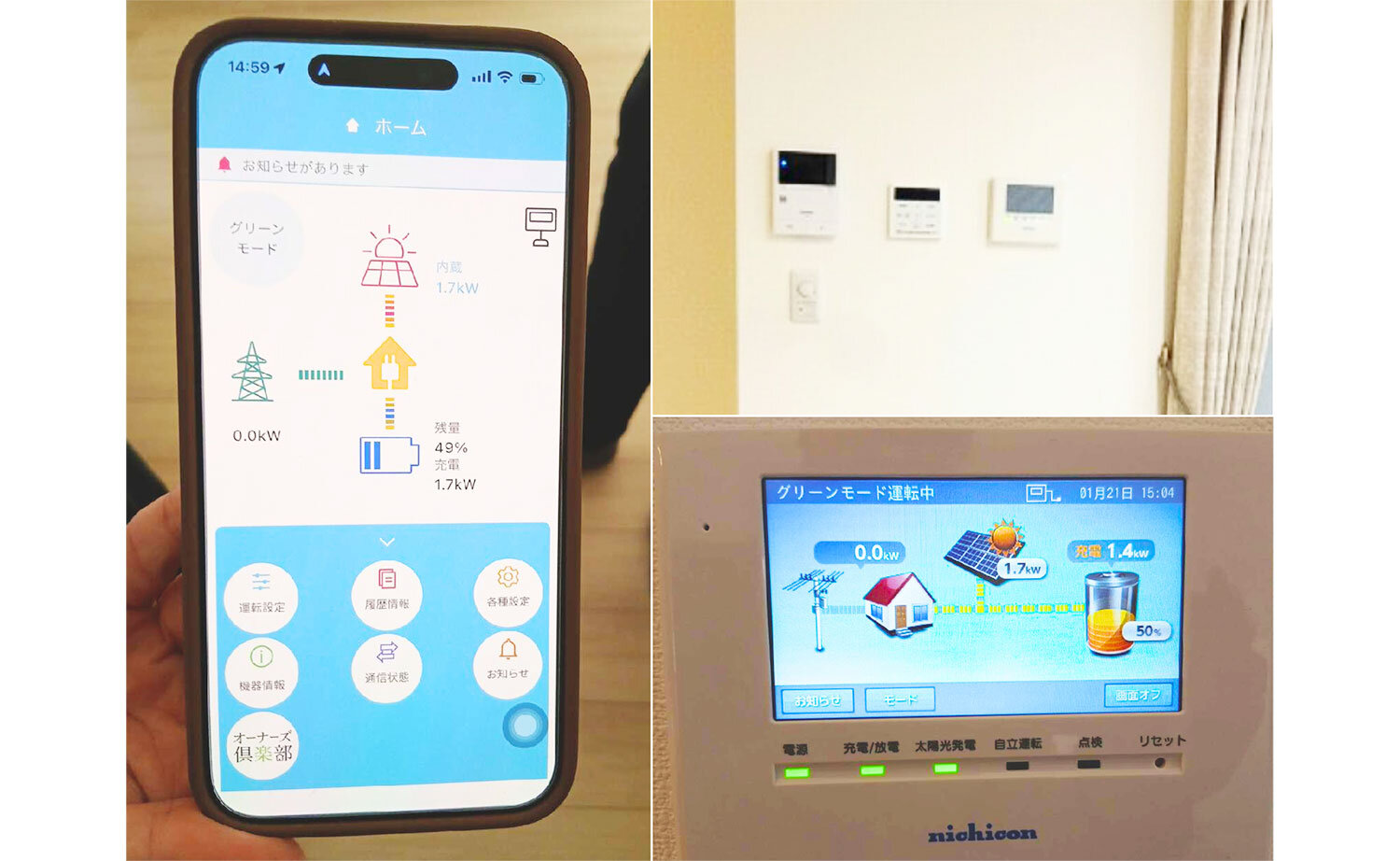 災害時、もし停電になっても自動で電気が切り替わるので、何も操作しなくて良いというのが本当に安心です。また、モニターだけでなく、スマホのアプリでも発電状況が見られるのが便利で気に入っています。引き渡し直後に少し通信エラーが出た時も、すぐに駆けつけて対応してくれたので信頼できましたし、面倒な補助金の手続きも全て代行してもらえたので、スムーズに導入できて助かりました。